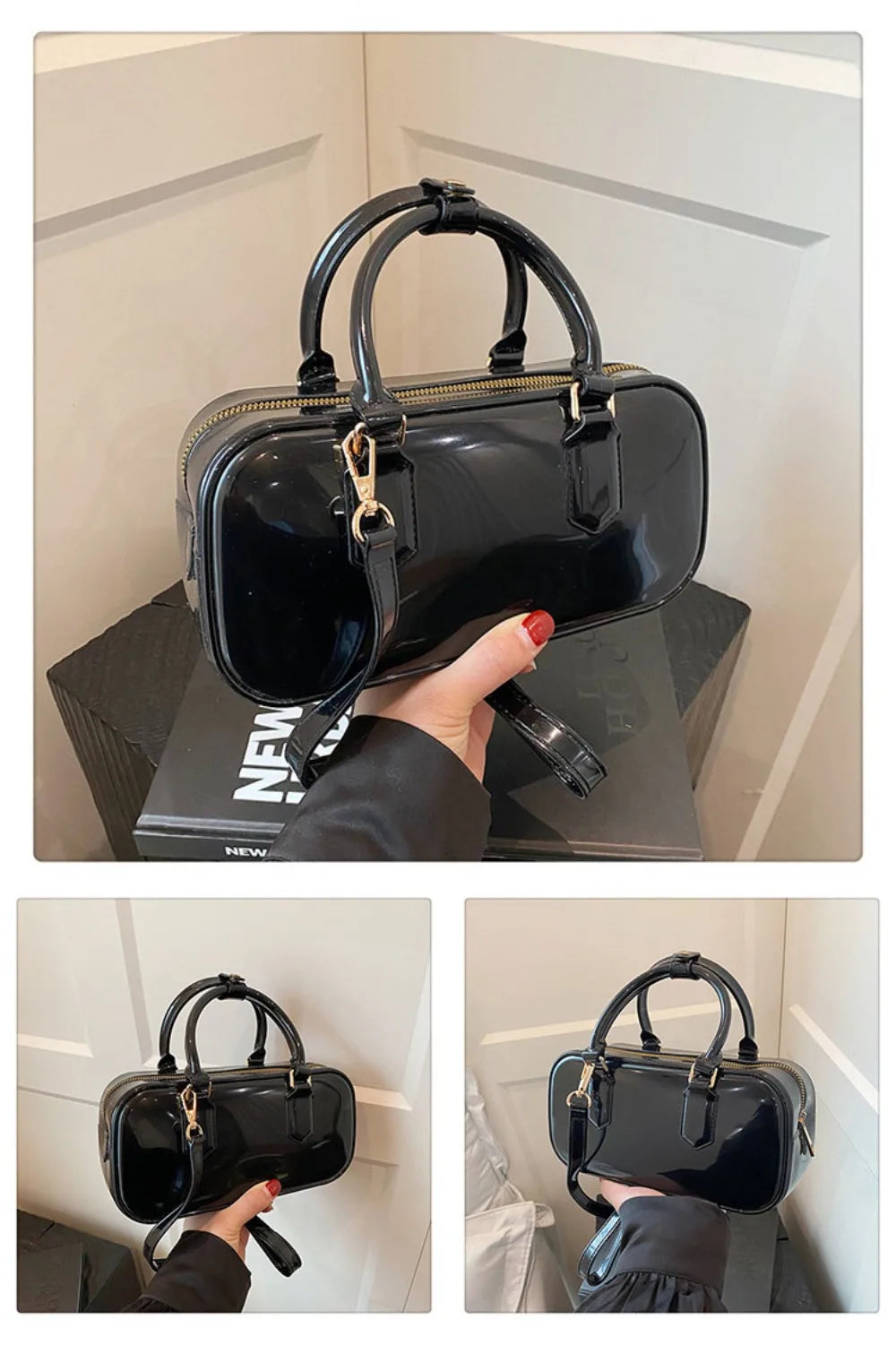 GlossyGlow Solid Color Jelly Hobos Bag – Casual Cute Waterproof Crossbody Satchel